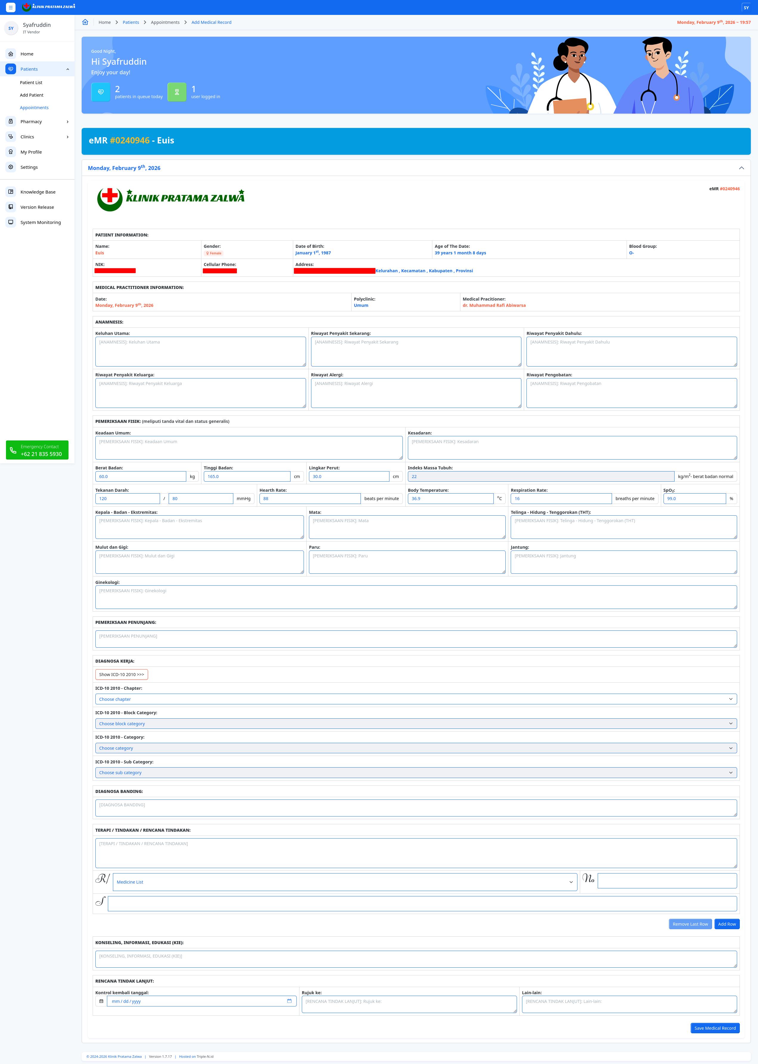 Halaman Add/Edit Medical Record berfungsi untuk melakukan pengisian rekam medis dari pasien.