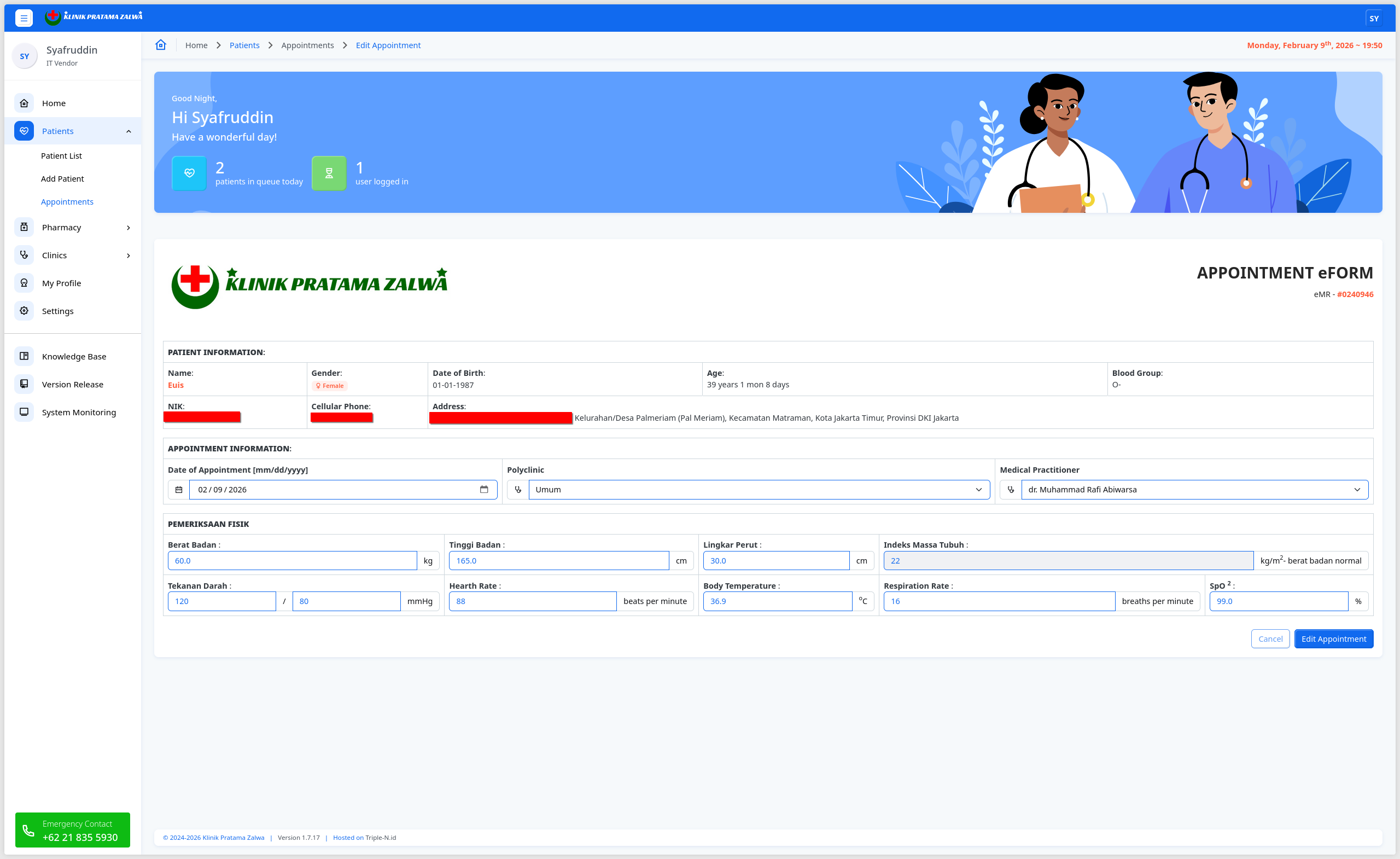 Halaman Edit Appointment berfungsi untuk melakukan perubahan appointment atau perjanjian pasien dengan praktisi medis.