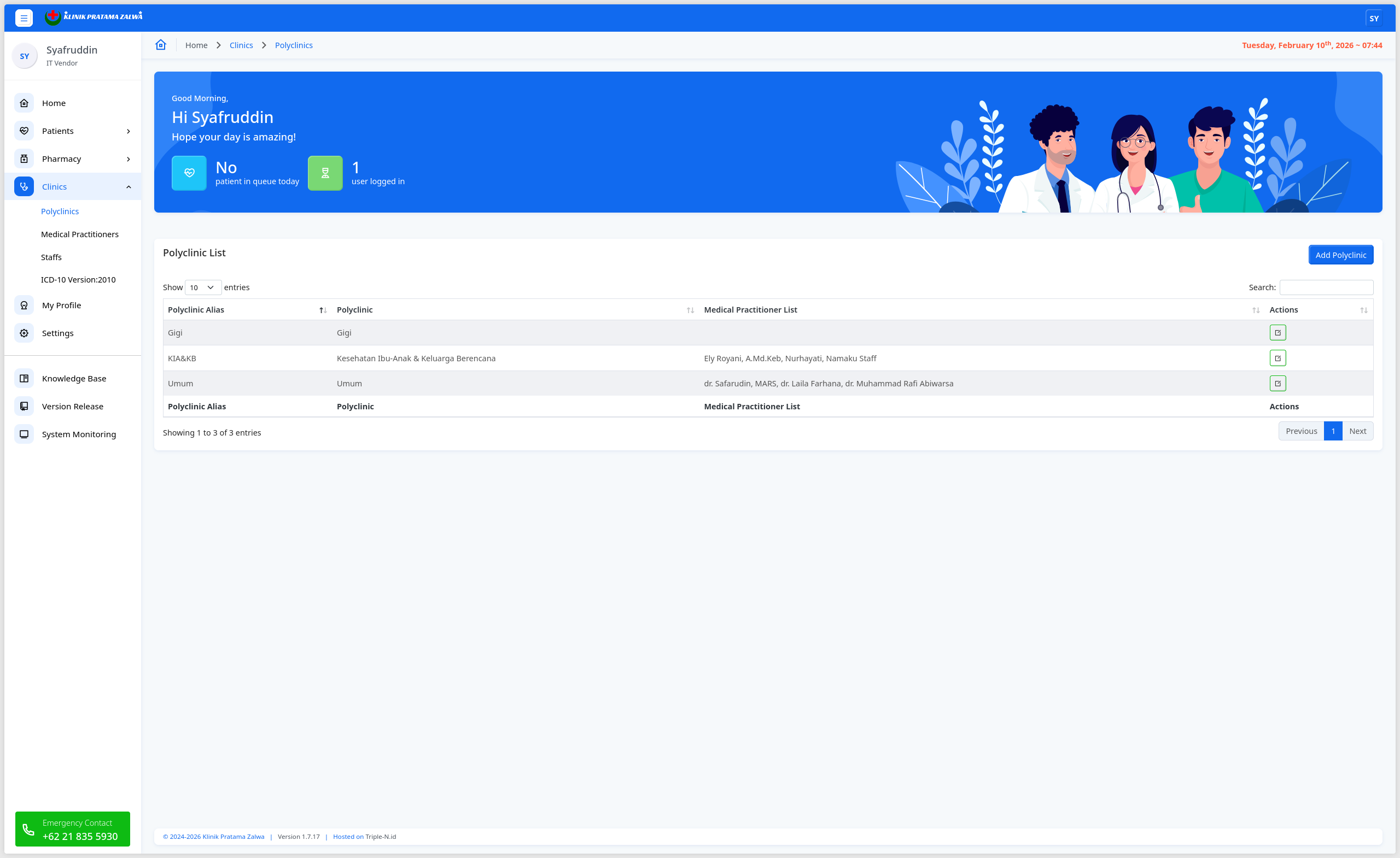Pada bagian kanan ada tombol Edit Polyclinic Name: